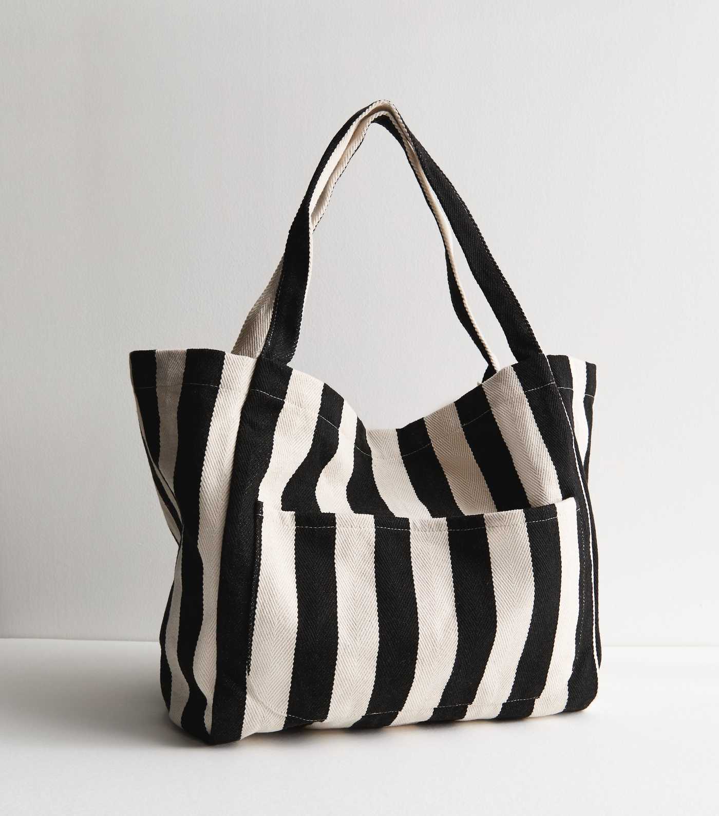 Black Stripe Slouch Tote Bag